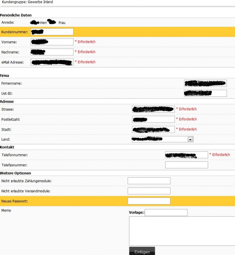 Kundendaten - Spalten stehen nicht fluchtend übereinander