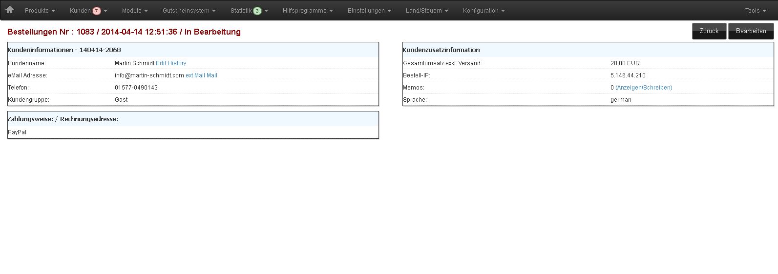 - in den Shop einloggen als Admin