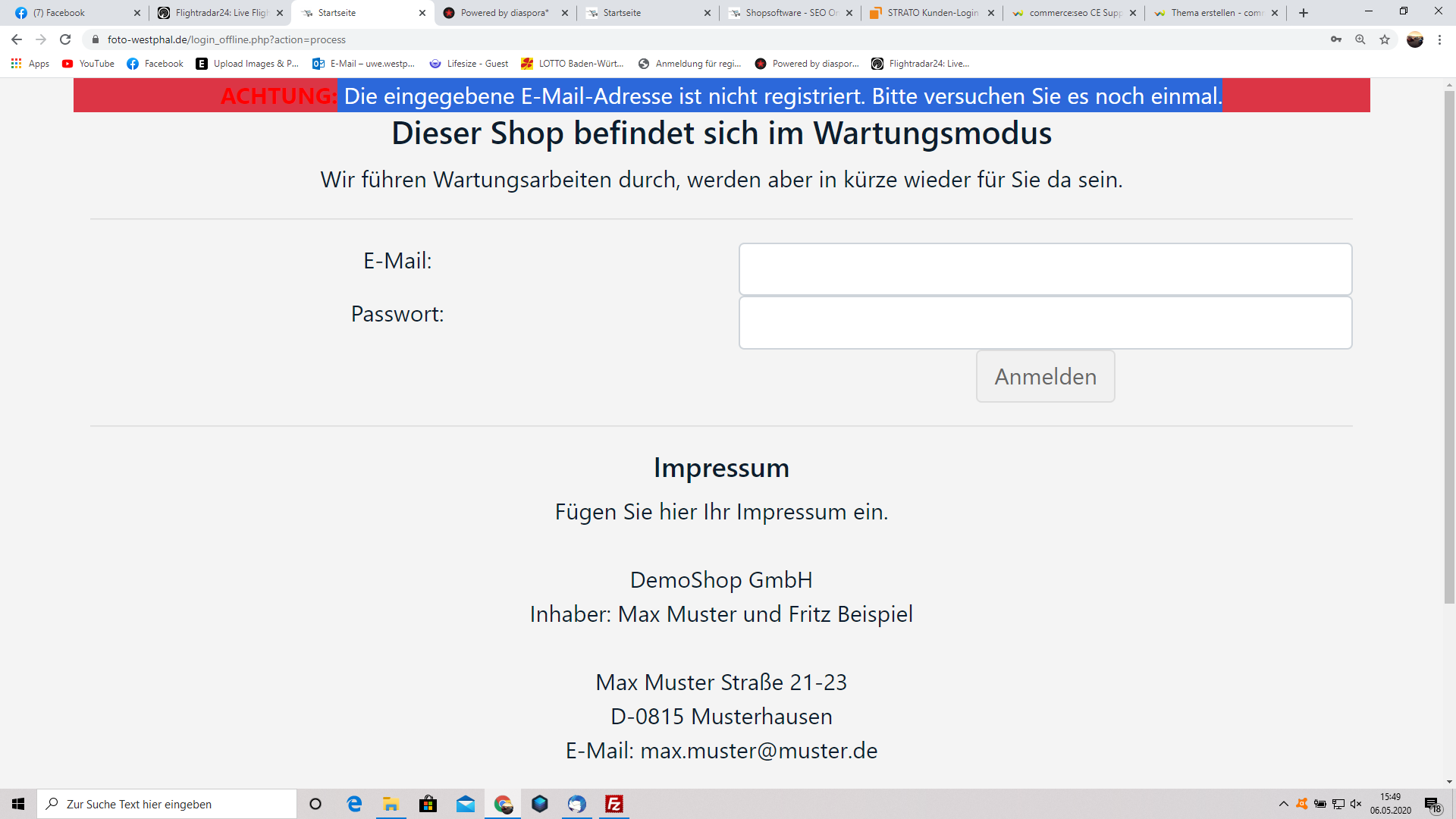 wenn ich diese eingebe kommt : Die eingegebene E-Mail-Adresse ist nicht registriert. Bitte versuchen Sie es noch einmal.siehe unten.