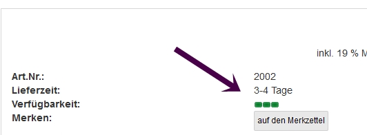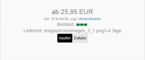 1) Lieferzeiten-Icon wird nicht mehr mit angezeigt. Das ist aber schon seit FQ11 der Fall und konnte ich nicht beheben. Nun wird aber zusätzlich in der Artikelübersicht bei der Lieferzeit dieses hier angezeigt: Lieferzeit: images/icons/images_3_1.png3-4 Tage