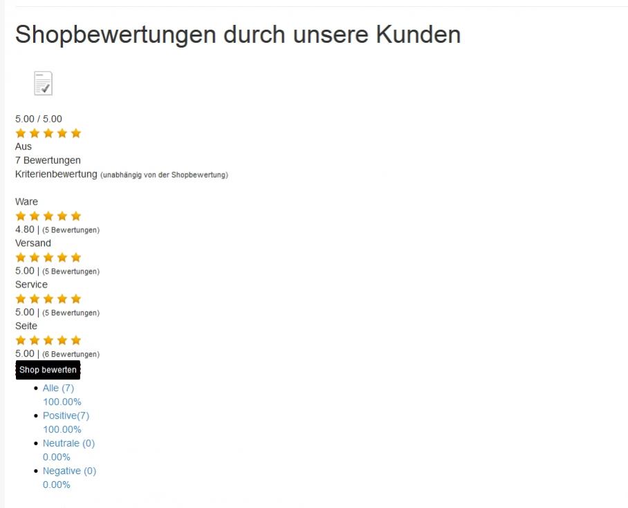 7) Und so sieht die Anzeige der Shopbewertung aus: