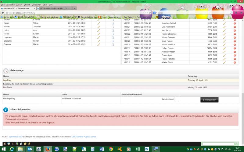 • Ich werde es mir noch mal ansehen mit dem Install. Die Download Version ist 2.5.2 und im Admin ist die jetzt auch grün :) Frohe Ostern noch.