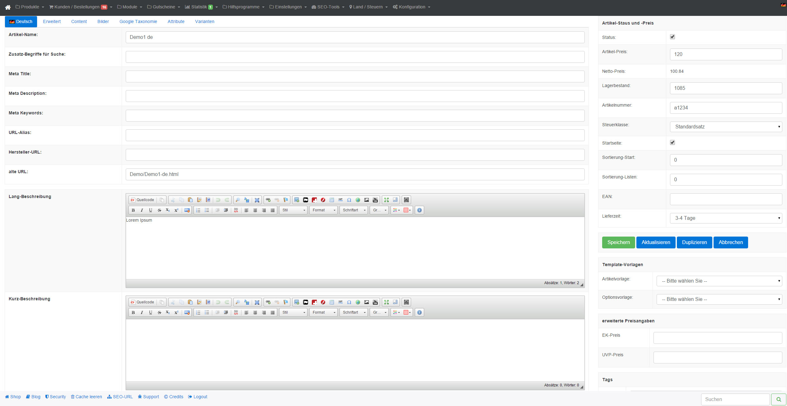 Als kleinen Vorgeschmack habe ich mal 2 Screenshots angehängt von der Produktbearbeitung.