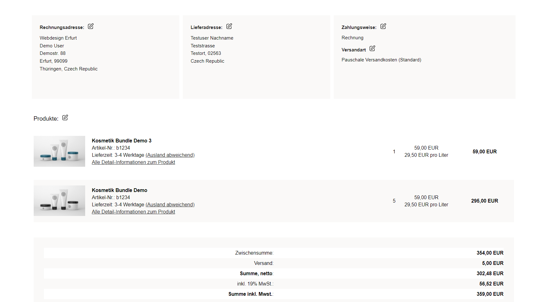 Wenn ich nun die Anzahl im WK ändern will, wechselt er automatisch auf 2. Ändere ich nichts, kann ich die 5 bestellen.