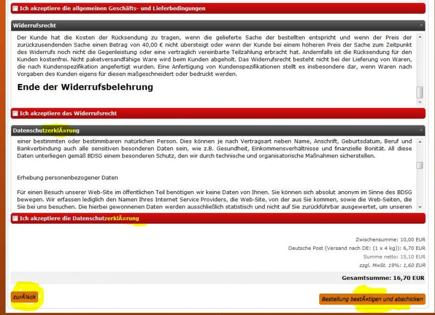 clearBlinkBlink('shipping');]]></cmd><cmd n="as" t="checkout_total" p="innerHTML"><![CDATA[<div class='ot_subtotal'>Zwischensumme: 10,00 EUR</div><div class='ot_shipping'>Deutsche Post (Versand nach DE: (1 x 4 kg)): 6,70 EUR</div><div class='ot_cod_fee'>Nachnahmegebühr: 4,76 EUR</div><div class='ot_total_netto'>Summe netto: 19,10 EUR</div><div class='ot_tax'>zzgl. MwSt. 19%: 2,36 EUR</div><div class='ot_total'><strong>Gesamtsumme</strong>: 21,46 EUR</div>]]></cmd></xjx>