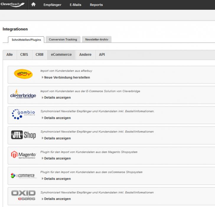 Wäre das Thema für die Entwickler interessant, wenn man den Shop(da keinen vernünftigen Newsletter Plug-In noch im commerce-seo vorhanden) über die Intergrität an Cleverreach Newsletter anzubinden. Es gibt mittlerweile alle führende Shops mit eigenen Schnittstellen.