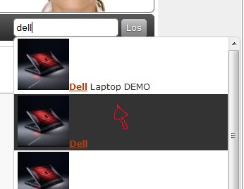 Das Produkt "Dell Laptop 2" wird nicht aufgerufen. Es bleibt lediglich der HTML-Tag in der Suchmaske stehen...