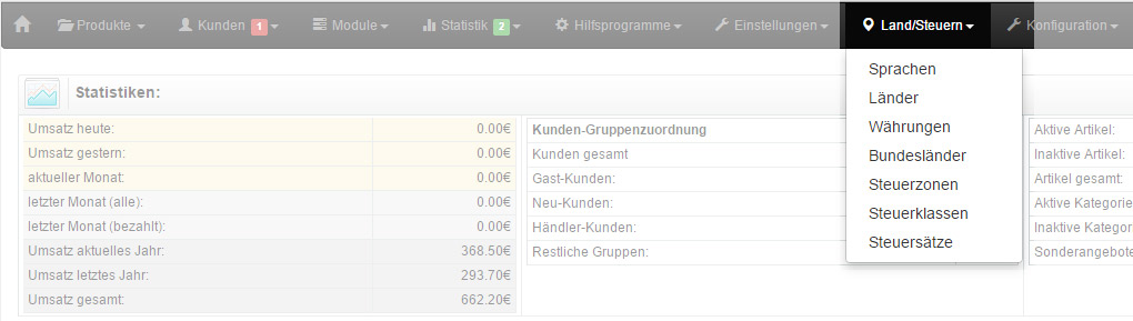 Grundkonfiguration des Onlineshop